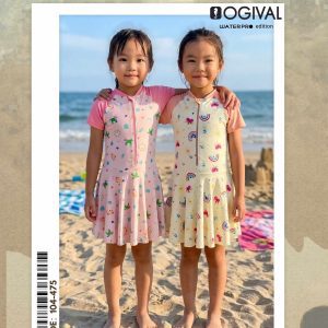 OgivalKids Girls 2pcs Swimwear (Long-Sleeved Top + Skirted Legging)