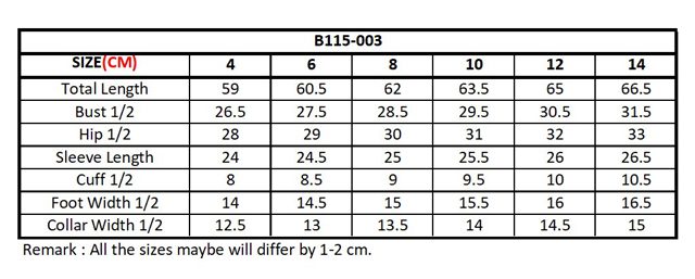 XL – Below 120cmRemark : All the sizes maybe will differ by 1-2cm.