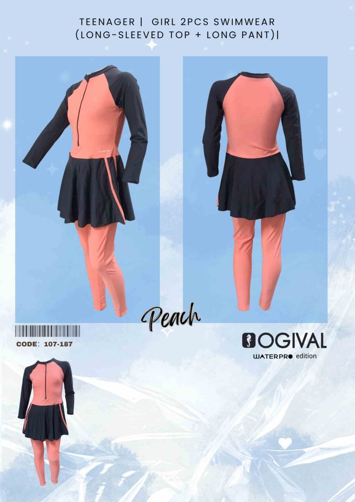 The swimsuit design showing a waist shape. The Top Shirt No Straight Cutting.