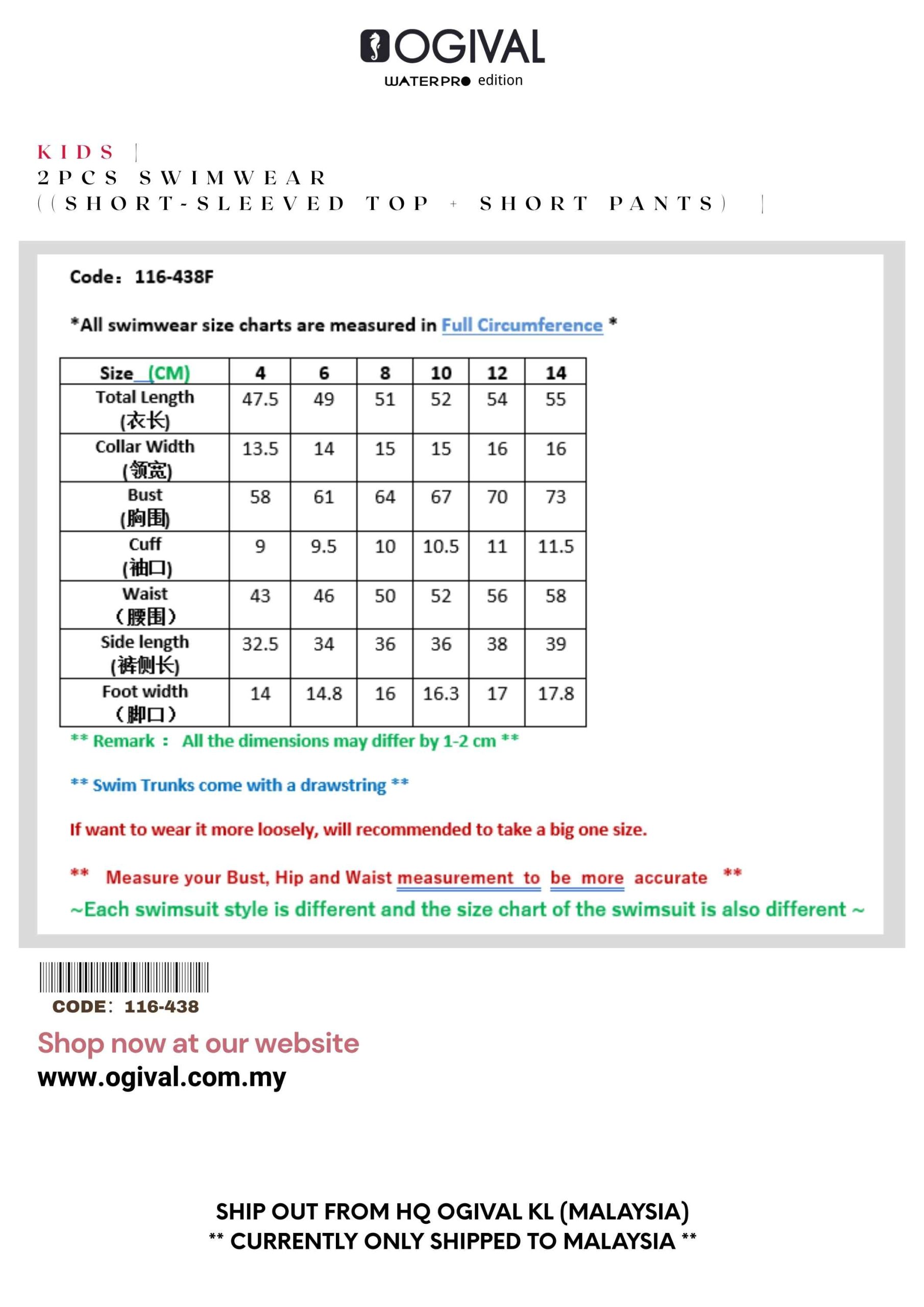 Ogival Kids 2pcs Swimwear (Short-Sleeved Top + Short Pants)NEW✨